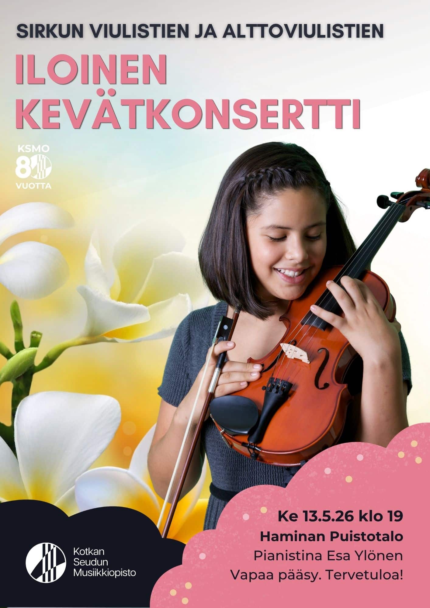 Sirkun viulistien ja alttoviulistien iloinen kevätkonsertti Haminassa. Lämpimästi tervetuloa, vapaa pääsy!